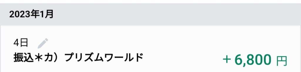 念の為銀行口座を確認するとプリズムワールドという会社からしっかりと振り込みされている!