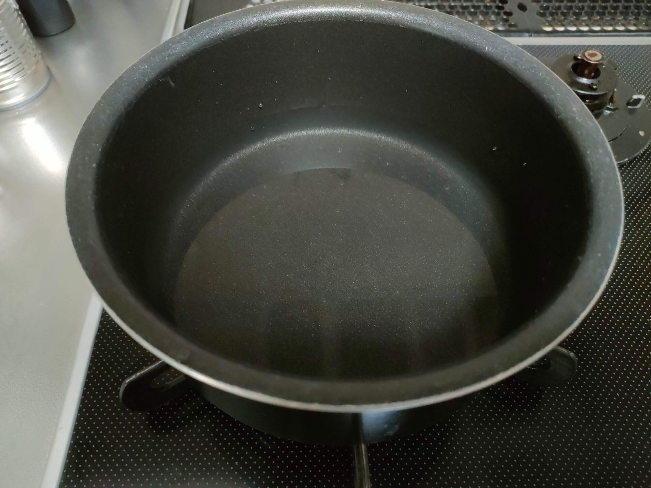 ②沸騰したお湯に麺・かやく・粉末スープを入れる