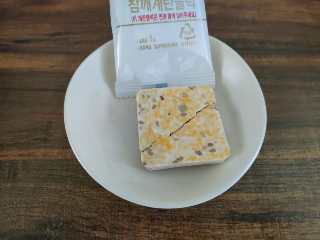 白いパッケージには四角い乾燥卵がついていて、日本にはあまりみない感じですね。