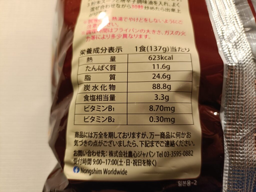 内容物麺、かやく、粉末スープ、唐辛子調味油