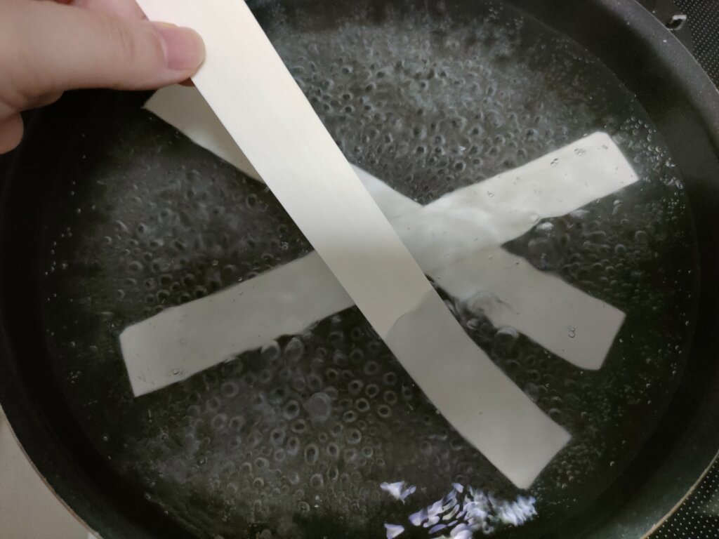 - 一本一本麺が重ならないようにお湯に入れていく(※超重要)