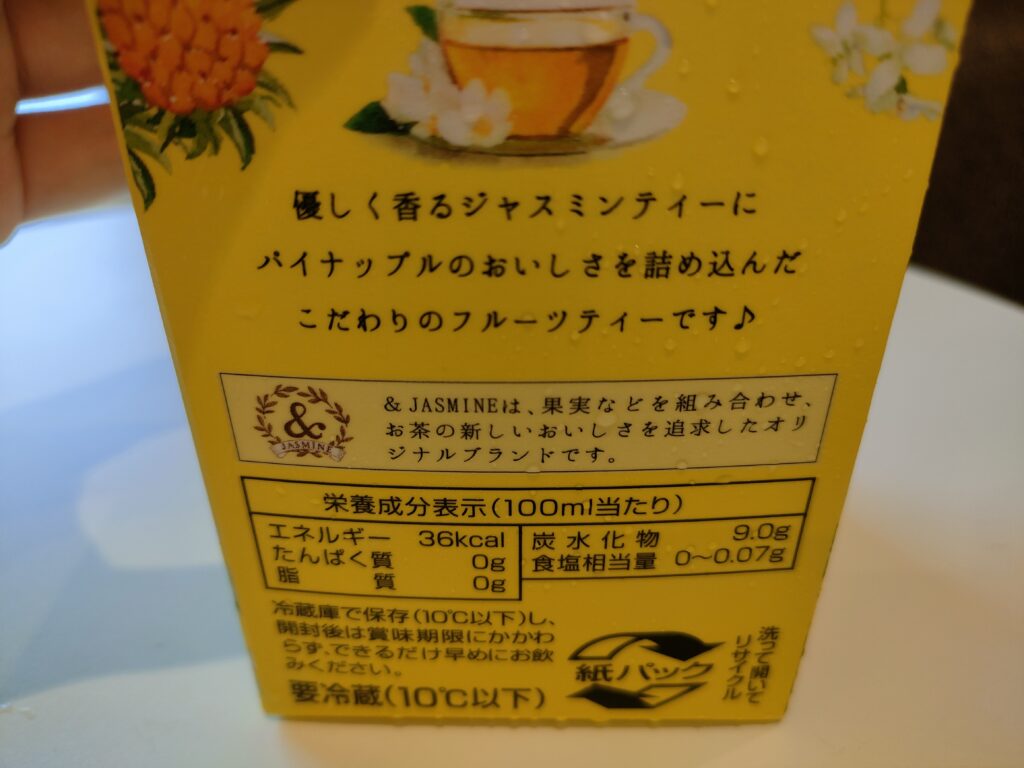 ジャスミンティーの要素はほんのちょっとなので、あの独特な香りが嫌いな人でも飲めそうです。