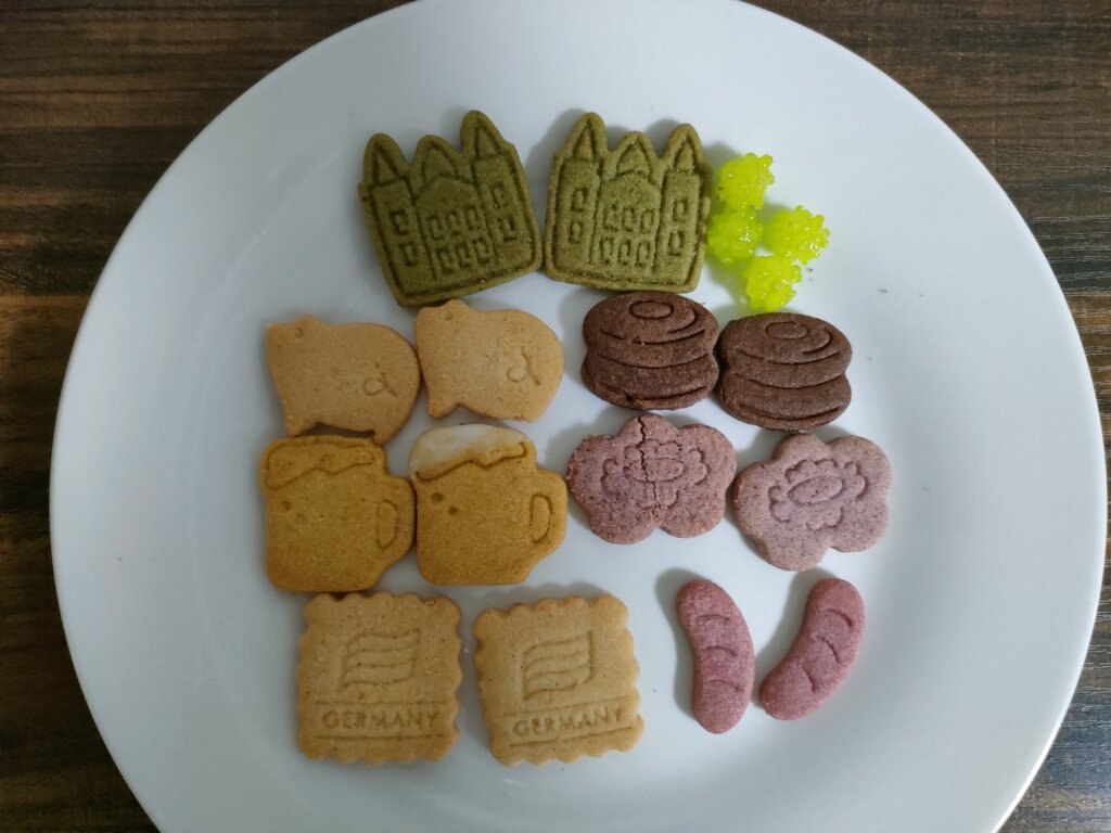 ドイツモチーフのサブレが各2種類ずつ計14枚・金平糖4個。