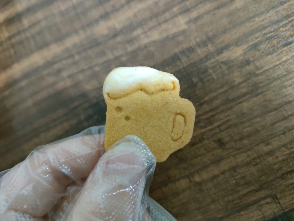 ビールの形をしたサブレにはホワイトチョコレートがかかっていて泡みたい!