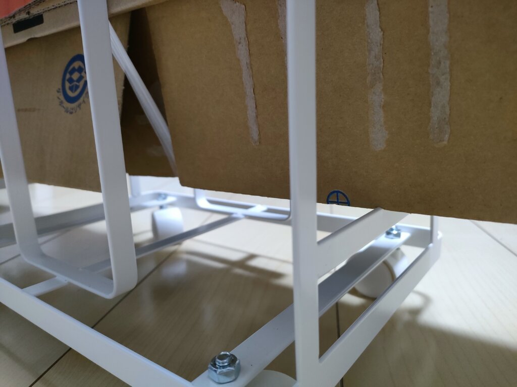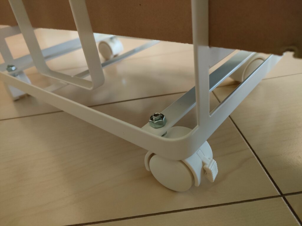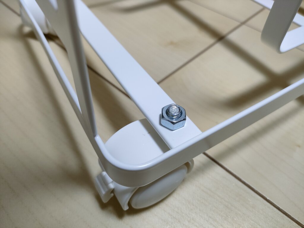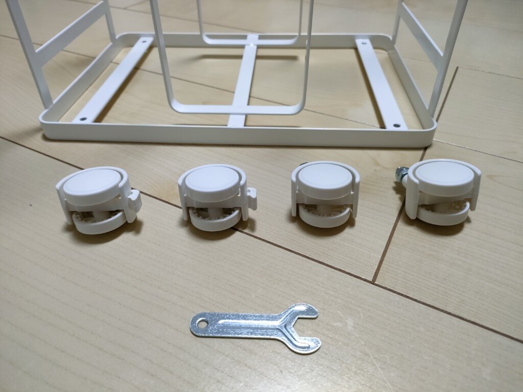 内容物はこんな感じで、4つのキャスターとスパナが一つついています。