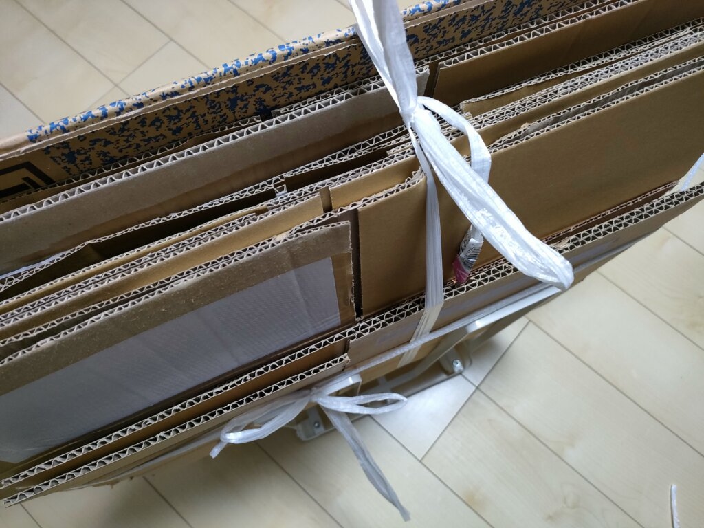 でも、ネットショッピングや飲水用の段ボールなど2ヶ月もすると結構な量が溜まり、毎回この量を紐で纏めるのはかなりの面倒くささ。