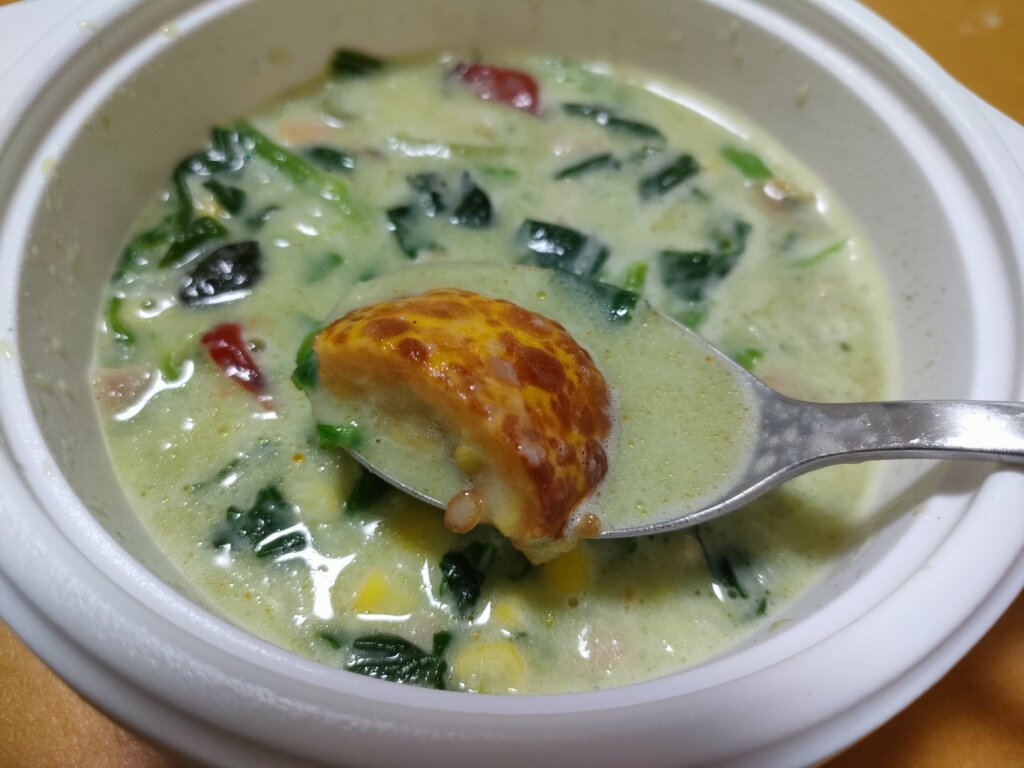 ただ自分はクリーム系があまり好きではないのと、少しクリーム感じが強すぎて塩気が足らないように感じました。(味が薄いわけではないけど、食事感があまり無い)