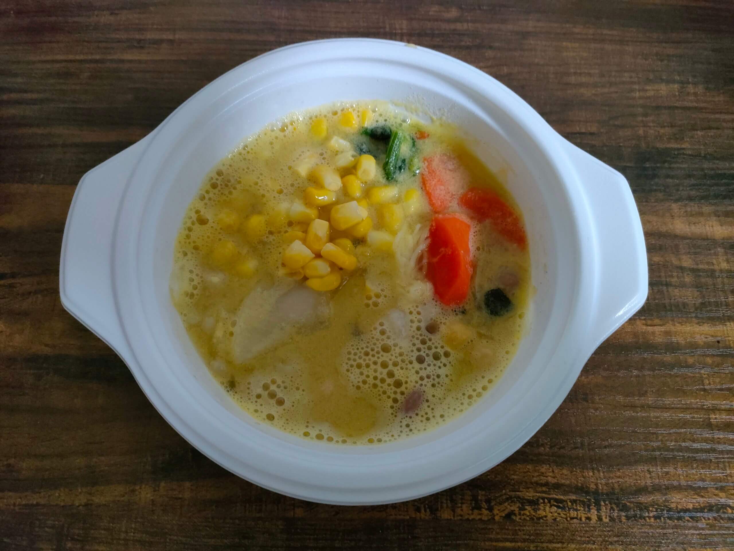 具材:コーン、パプリカ、人参、大根、つみれ、チンゲンサイ、キャベツ、ごぼう
