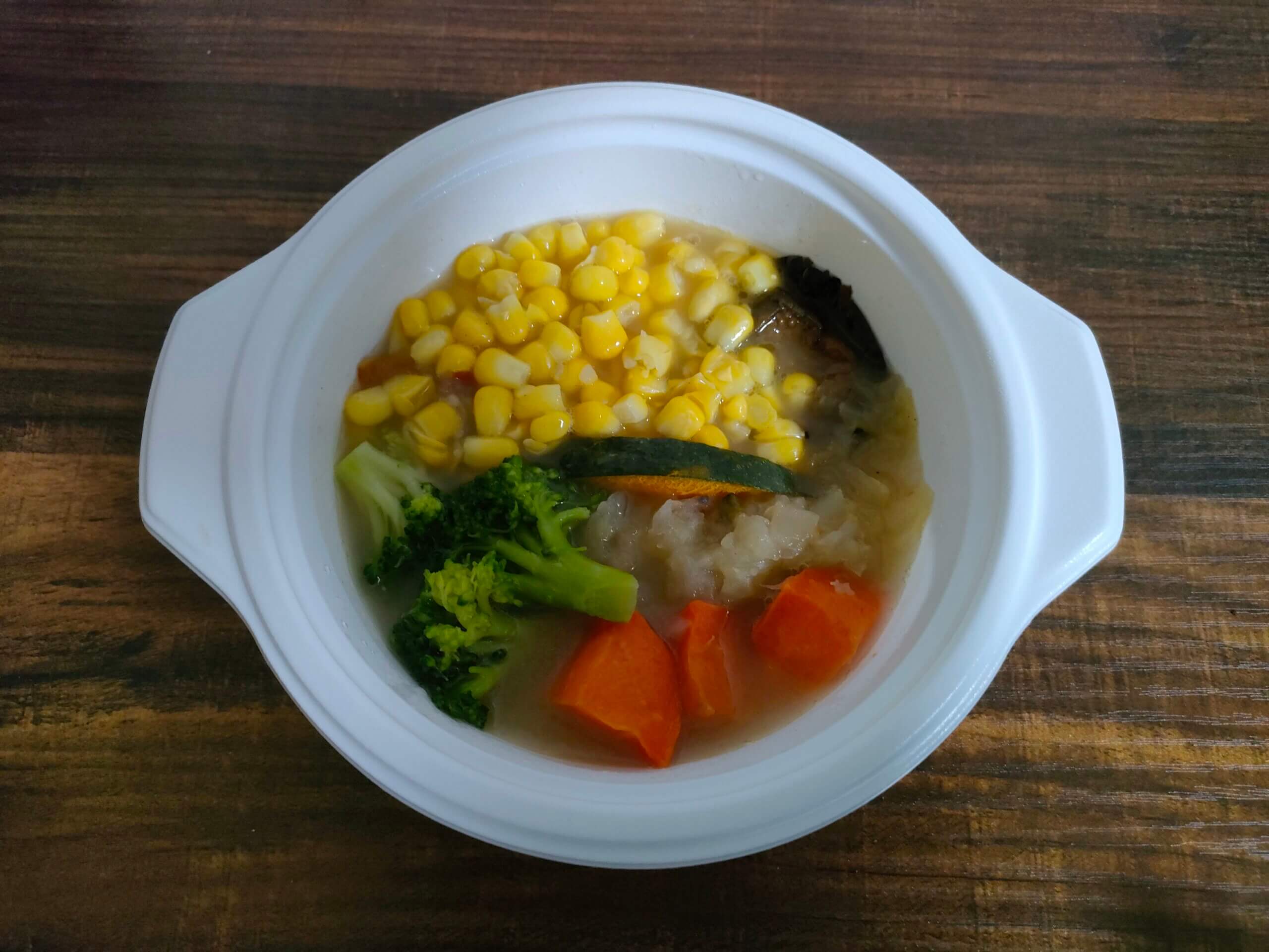 具材:コーン、玉ねぎ、人参、かぼちゃ、ブロッコリー、ズッキーニ、ピーマン、いんげん豆、レンズ豆、じゃがいも、ナス、セロリ