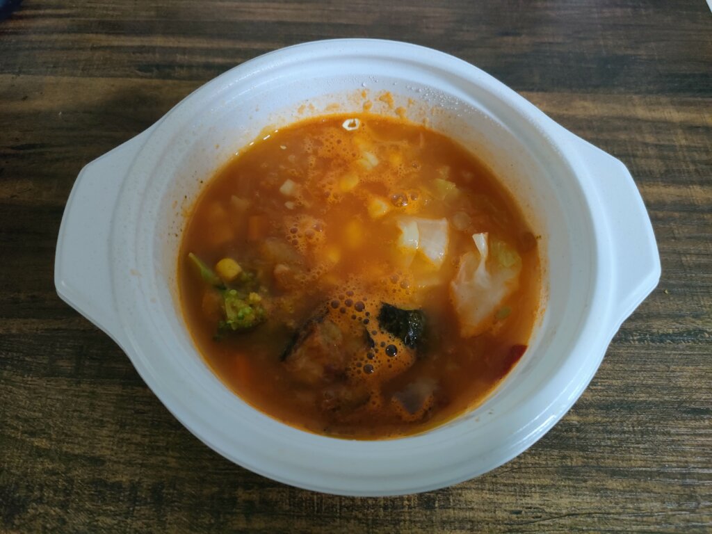 またメニューによっては中央が冷たいままだったりすることもあり、一度温めてもスプーンで混ぜてから再度30秒~1分程度温め直す必要がありました。