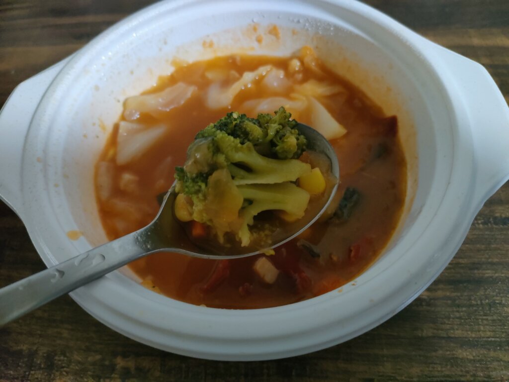一口サイズのブロッコリーがスープとよく絡んで美味しかったのが印象的でした。